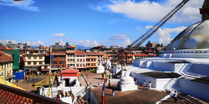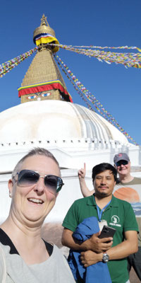 Kurz ein kleines Powernap dann ein feiner Lunch. Um 14 Uhr kam unser Guide und wir machten unsere erste Entdeckungstour zur "Baudha" in der Altstadt. Dort ist die grosse Stupa. Das Wetter ist sonnig und warm bei 25 Grad!